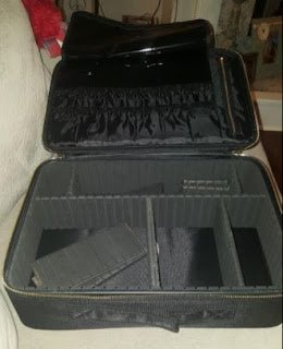 I was able to review a beautiful makeup case from DQS. It has a shoulder strap that makes it easy to carry with you and zips up tight. The whole top inside cover has slots made for brushes and things of that nature. There's even a flap that keeps all of your items in place.